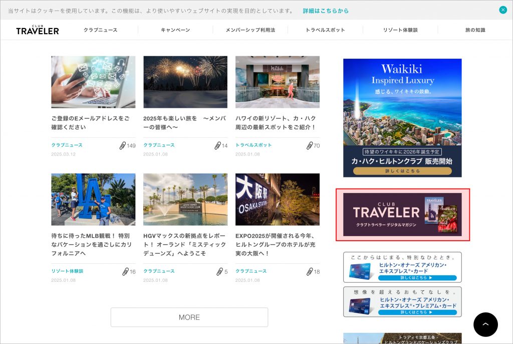 アクセスはとても簡単! クラブトラベラーウェブサイトの右のバナーをクリックしましょう。