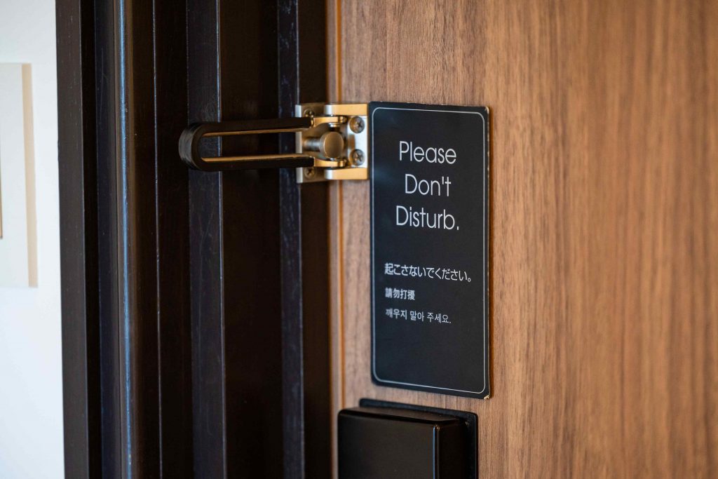 併せて、玄関ドアに掲示する「Don’t Disturb」カードの新調も。