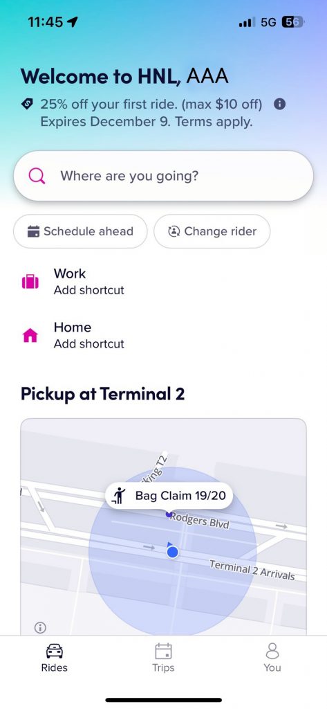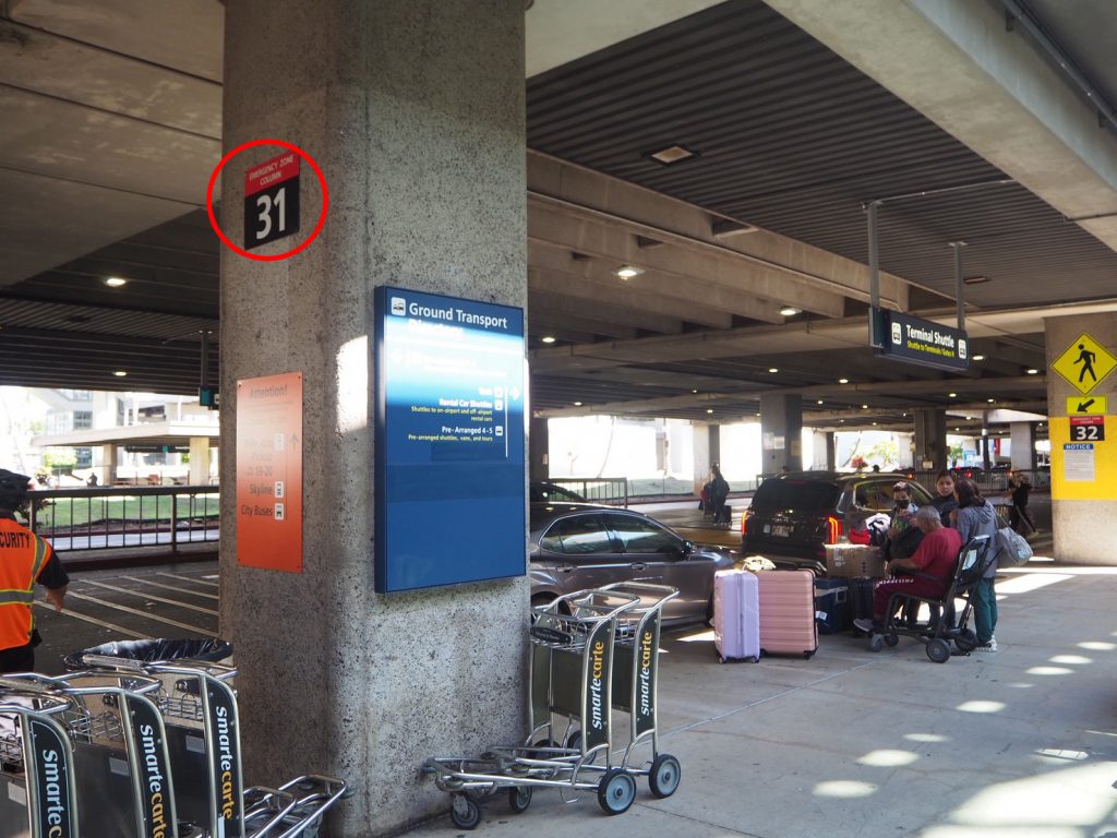 2025年10月、ホノルル高架鉄道「スカイライン」の空港駅がオープンしたことに伴い、空港のライドシェア乗り場が移動しました。これまでは2階でしたが、新しい乗り場は1階になってアクセスがスムーズに。