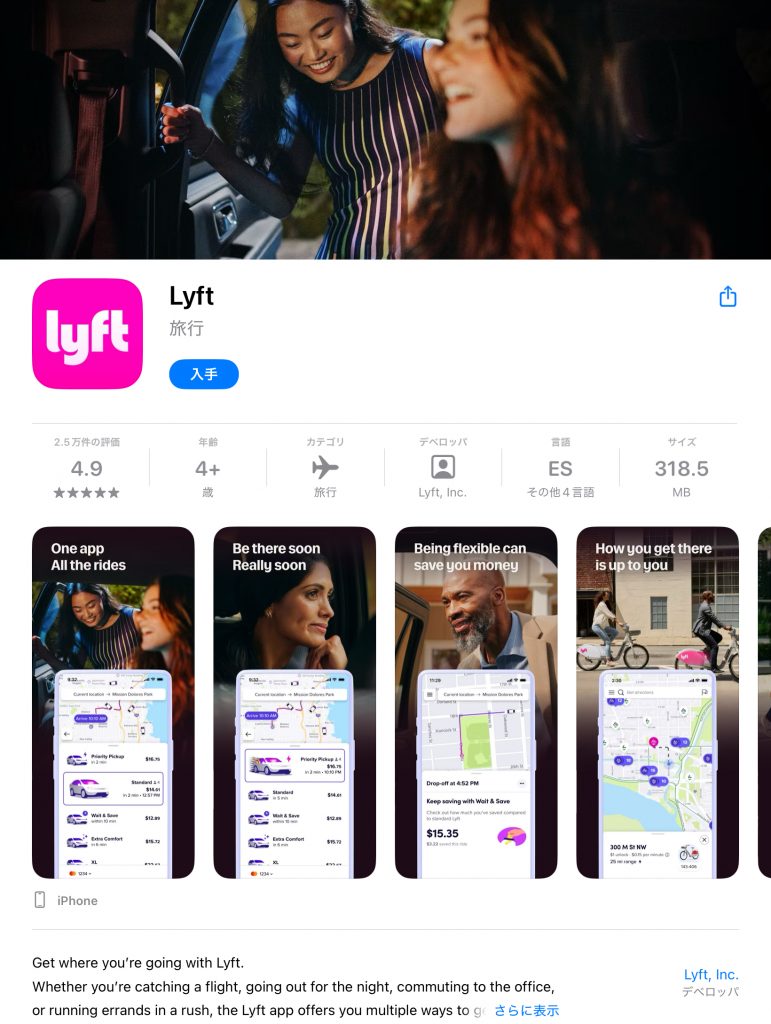 まずはご自身のスマートフォンにLyftのアプリ(Android/iOS)をダウンロードしてください。