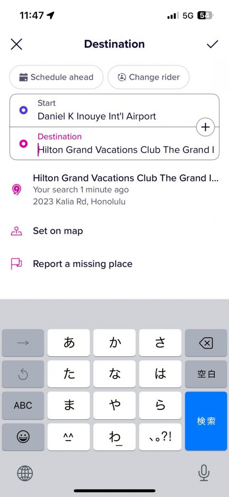ここでは一例として、ダニエル・K・イノウエ国際空港からリゾートまで、実際に配車手続きをする場合の方法をご案内します。