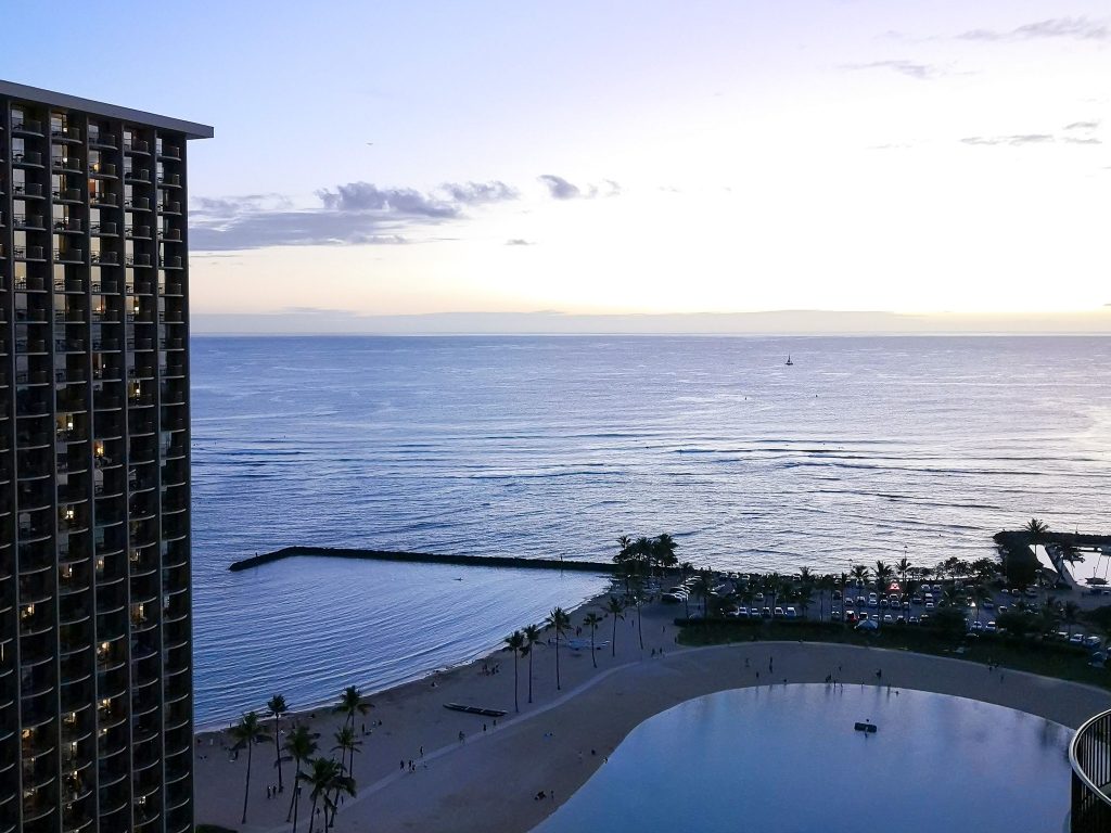 ユニットは1ベッドルームのみで、私はカラカウア通りやワイキキ・ビーチ・ウォークを眺めるスカイラインビューが好き。ダイヤモンドヘッドから昇るサンライズを眺めてから朝の散歩に出かけています。
