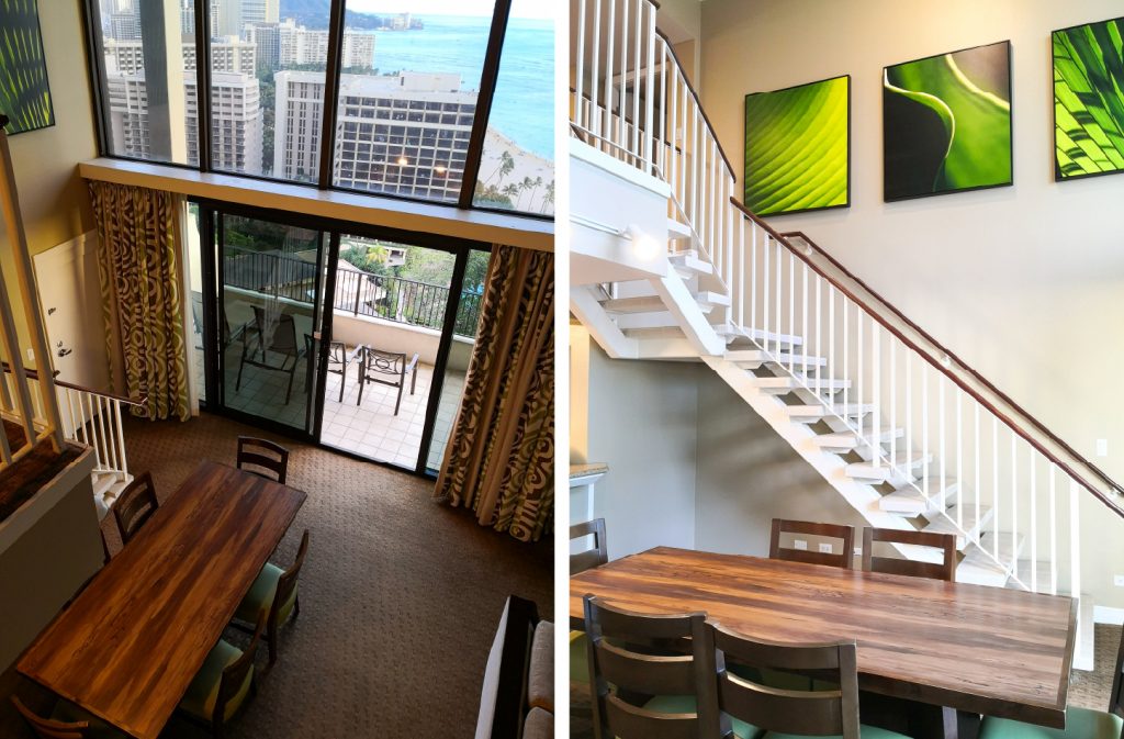 そして、他のリゾートにはないメゾネット式の2ベッドルーム、3ベッドルームは、吹き抜けの開放感があふれる非日常の空間。このメゾネットタイプの2ベッドルーム・プレミア(オーシャンビュー)と、オーシャンフロントビューの2ベッドルーム・プレミアは同じポイント数で予約できることをご存知ですか? ラグーンタワーは必要ポイント数が比較的抑えめなのも魅力ですね。